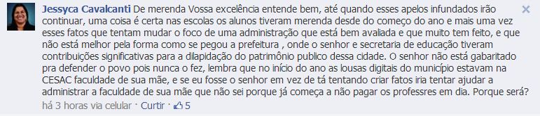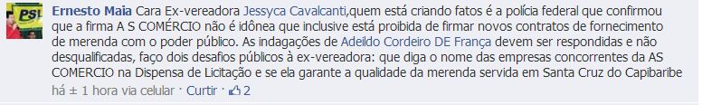 social, a vereadora Jéssyca Cavalcanti (PTC) afirmou que Ernesto tenta